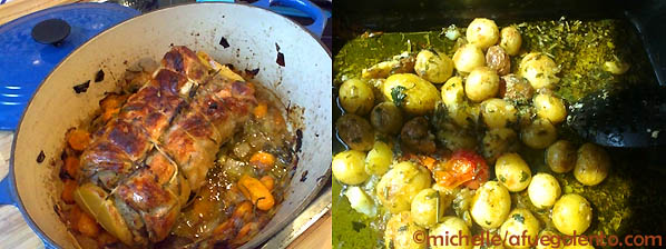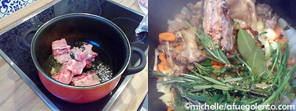 No os agobiéis con el paso a paso en fotos todos será más claro. En dos horas como mucho el cordero, su caldo y su acompañamiento, estarán sentenciados, porque mientras se empieza con el caldo se hace la muselina, se mete en el horno el cordero incluso se hornean a la vez las patatas en el piso de abajo del horno o donde se os antoje colocarlo.
