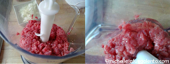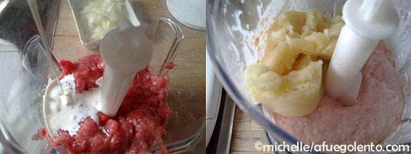 En el mixer, introducir la carne cortada en dados, se debe triturar por tirones cortos para no pasarse y en ver de carne picada tengamos “sorbete de ternera”.