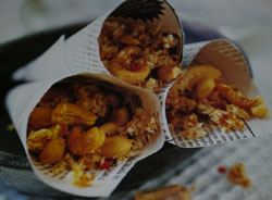 Aunque en esta región se utilice mucho la comida agridulce, hay que tener en cuenta que esta zona es famosa también por el picante de sus platos, uno de sus platos más consumido son las avellanas tostadas con coco.