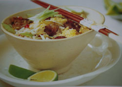 En Tailandia es uno de los platos más conocidos de la cocina tailandesa es un plato stir-fried a base de fideos fritos con huevos, salsa de pescado, salsa de tamarindo, pimiento rojo, y cualquier combinación de brotes de soja, gambas, pollo, o tofu, decorado con nueces y cilantro. Se sirve habitualmente con una rodaja de lima, El zumo de esta fruta se añade al plato como condimento. En Tailandia puede ser servido decorado con una flor de banana.
