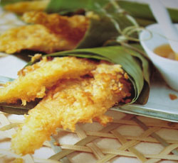 Uno de sus postres favoritos es la banana frita la cual se sirve sobre hoja de plátano fresca.
