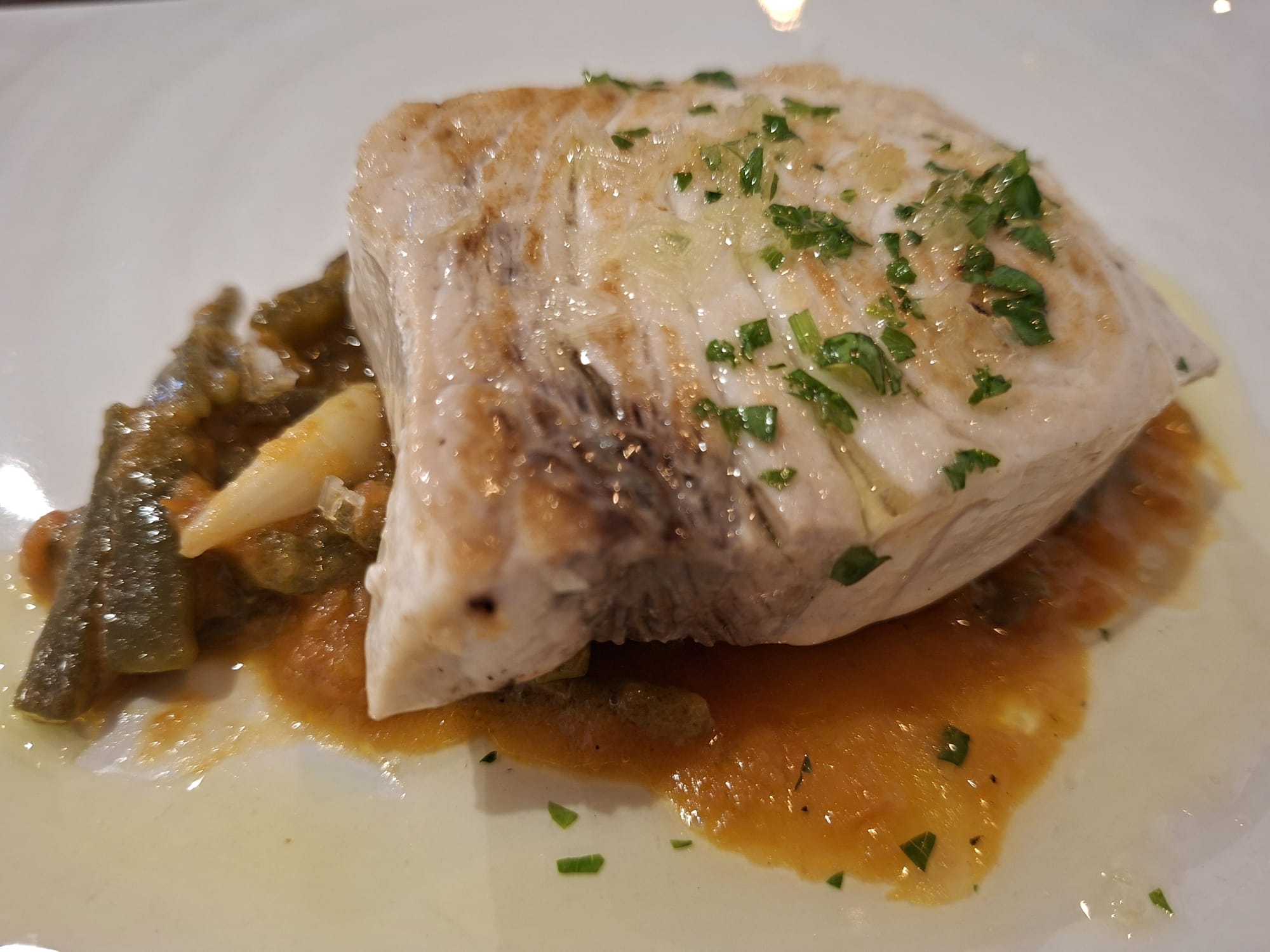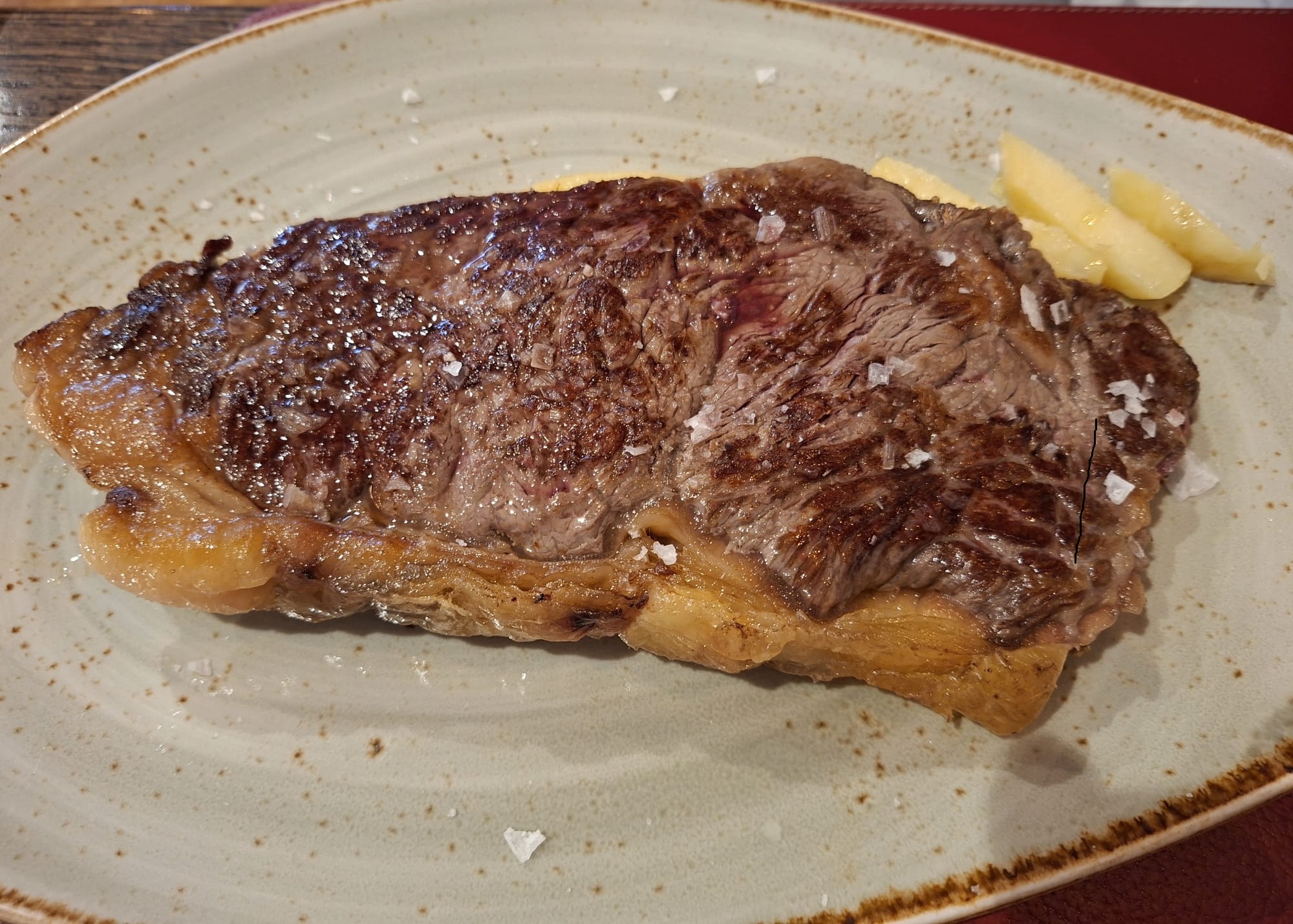 El nivel no bajó en ningún momento: un impecable pez emperador con base de judías verdes, y un entrecot perfectamente ejecutado, con el punto exacto y una maduración que se dejaba notar en cada bocado. Y como broche final, una tarta de queso que merece mención aparte: probablemente una de las mejores que he probado nunca.