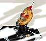 Trituramos los tomates con el robot y los colamos por un fino. Añadimos gelatina (unas 9 hojas por litro de tomate). La gelatina influye en la acidez del tomate. Se monta todo en un bol con un túrmix de varillas, teniendo el bol sobre un baño de hielo y agua (de esta forma, la gelatina va haciendo efecto y se forma como una esponja). Se extiende sobre una bandeja y se cortan rectángulos de 1 cm de altura más o menos, para hacer de base para el resto de ingredientes