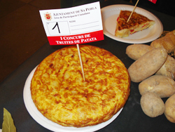 Sa Pobla el municipio de las Islas Baleares donde el cultivo de la patata es fundamental en su economía. Así que su Ayuntamiento ha preparado diversas actividades a lo largo del año relacionadas con la patata, desde un punto de vista económico, social, lúdico y gastronómico. Una de éstas ha sido reunir a todos sus vecinos en una cena popular en la Plaça Major de la localidad. Pero además, el pasado 21 de julio Sa Pobla ¡la armó! Organizando su primera competición, a nivel local, de tortillas: el "I Concurs de Truites de Patata". Tal fue el éxito de convocatoria que participaron un total de ¡195 tortillas! No hace falta decir que el jurado tuvo que hincharse de valor para catarlas todas y decidir qué tres finalistas se harían con los premios.