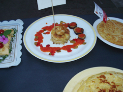 El derroche de creatividad fue magnífico en la presentación. Partiendo de la misma base, huevos y patatas, no había dos iguales entre las largas mesas que se situaron en el centro del escenario.