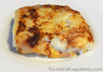 En una bandeja de horno pon un poco de bechamel y coloca capas alternas de lasaña, carne y bechamel, terminado con una capa de pasta, cúbrela con bechamel. Pon el queso rallado y hornéalo hasta que se gratine