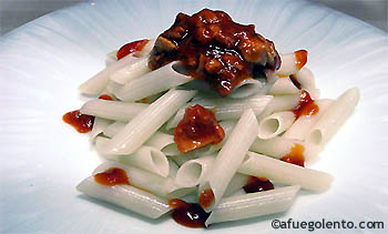 Mezclar los macarrones con la salsa y servir caliente. Si se desea, espolvorear con queso rallado