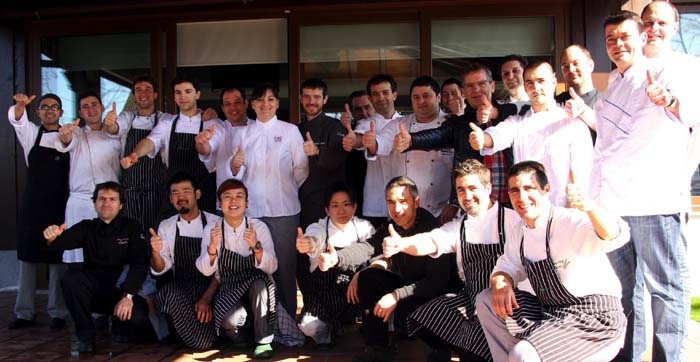 Todos ellos se han reunido en una fotografía de familia, que está encabeza por los tres cocineros nipones que trabajan hoy en Hondarribia en el restaurante Alameda: Erina Yamanaka, Massafumi Koyama y Tetsuro Maeda.