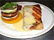 Salmón al vino blanco con vegetales grillados sobre polenta frita. Receta de Mario Villalba ?Bs As - Argentina
