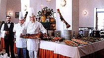 La carta de su restáurente cuenta con especialidades de ámbito internacional, aunque, sin embargo, posee también una cocina puramente tradicional y autóctona de la zona, ya que ésta es demandada por una inmensa cantidad de clientes que acuden a la villa en busca de esos platos típicos del lugar. Como puede ser, por ejemplo, el remojón, una especie de ensalada a base de naranjas, bacalao y huevos duros aderezado todo ello con el delicioso aceite de oliva virgen de Andalucía. O el choto al ajillo con espárragos entero rebozado. Sin faltar el típico y exquisito salmorejo cordobés, que es una crema fría confeccionada con tomates, migas de pan y ajos. Un deliciosos plato que podríamos decir que es el santo y seña de la cocina cordobesa.