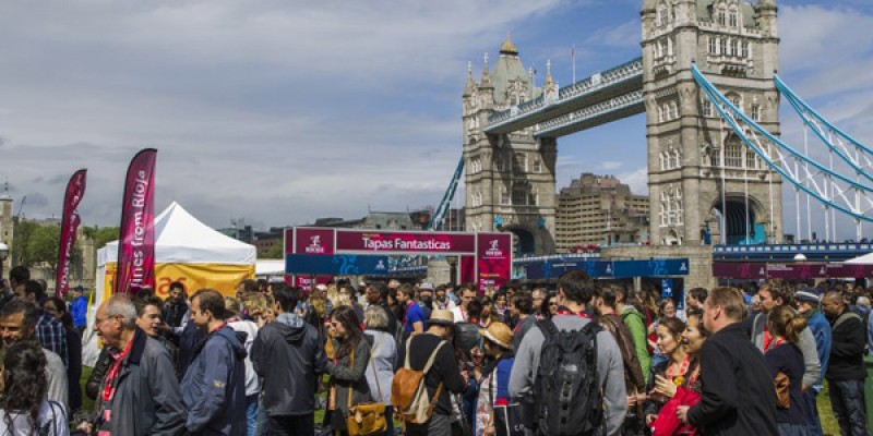 Así, este parque a los pies del “Tower Bridge”, se convertía en un escenario inspirado en las calles riojanas, concretamente en la Calle Laurel, donde los asistentes pudieron disfrutar de los vinos riojanos y de la conocida tapa española. Éstas, elaboradas por los 11 restaurantes españoles ubicados en Londres, incluían, por ejemplo, un pincho de cerdo ibérico con queso Idiazábal o uno de pollo con salsa Romescu, chicharrones, setas salvajes, así como las conocidas paellas y el chorizo a la brasa.