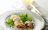 Pollo crujiente de corral con pasta filo relleno de setas y espinaca, ensalada y patata asada al romero 23-05-2016