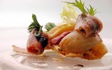 Un lecho de lujo elaborado con senderuelas, alcachofas y butifarra para acoger a las exquisitas vieiras con un toque de trufa 08-03-2012