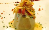 En esta tapa está presente el mar en forma de bacalao y el aroma de las gambas, pero también incluye toques de tierra a través del caldo de ave 30-03-2012