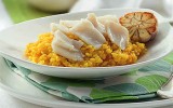 El bacalao se presenta en láminas limpias en esta receta en la que el azafrán aromatiza el cremoso arroz 28-05-2012