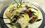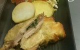 Pollo crujiente de corral con pasta filo relleno de setas y espinaca, ensalada y patata asada al romero 23-05-2016