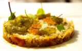 El plato consta de 4 elaboraciones: Los pétalos de tomate, la crema de queso, el caramelo de olivas negras y el Atún en costra de panko. 06-11-2017