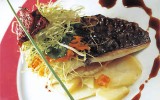 Melosa textura del rabo de buey, transformado en elegante receta al servirlo deshuesado, envuelto en fina lámina de Jabugo en un plato en el que las guarniciones cobran protagonismo 15-12-2011