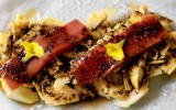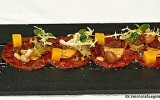 El la textura carnosa del versátil mango permite múltiples presentaciones. En esta ensalada está preparado a la parrilla, y su acidez y dulzor refresca el punto de salazón de la cecina 19-06-2012