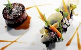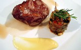 Melosa textura del rabo de buey, transformado en elegante receta al servirlo deshuesado, envuelto en fina lámina de Jabugo en un plato en el que las guarniciones cobran protagonismo 15-12-2011