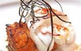Langostinos rellenos de setas, mouse de langostinos y un jugo de gazpacho que no se lo salta un galgo! Deliciosa interpretación con un merecido Premio en el Concurso de Langostino de Vinaròs 21-09-2012
