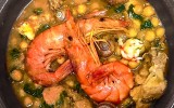 Sabrosísimo estofado mar y tierra combinando legumbres, caracoles, conejo, gambas y hortalizas 22-02-2021