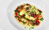 Milhojas de atun y piquillo con calabacín, tomate y vinagreta ligera. 04-04-2016