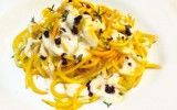 Una receta TodoPrimavera: calabacines de temporada, el aroma del azahar, los brotes de tomillo y el contraste de las aceitunas negras. Fácil, saludable, rápido, sin gluten, sin lácteos de origen animal ¡delicioso! receta de Mercedes Palmer 22-03-2021
